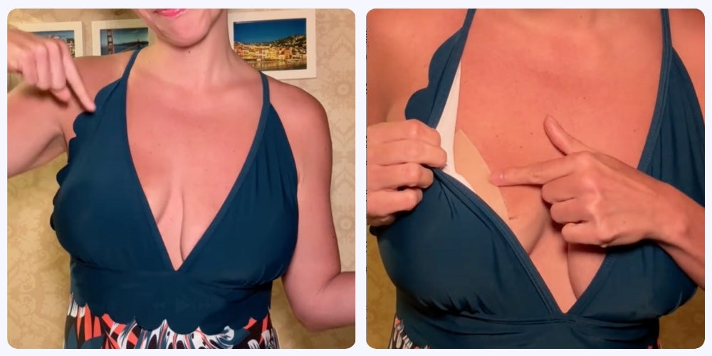Dual-adhesion technology - Sticks to your clothes AND your skin. Two points of contact = nothing moves.