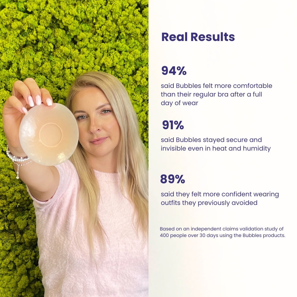 At Bubbles™, we believe confidence starts with comfort. And comfort looks different for everyone. That’s why we create nipple covers and lifting solutions that work with your body, not against it. No wires. No padding. No pressure to fit a mold.